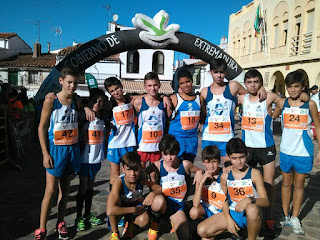 Los primeros en tomar la salida fueron los componentes de la mejor hornada que tiene ahora el Club, Infantil Masculino con los Adrianes a la cabeza, pero seguido de un grupo muy nutrido y de una calidad palpable. No fallaron, 2º Adrián Cuadrado, 3º Adrián Carmonet con billete para ir con la Selección de Diputación de Cáceres al Cross de Aranda de Duero, pero además siete de ellos se metieron entre los 25 primeros, cerrando un 2º puesto por equipos.